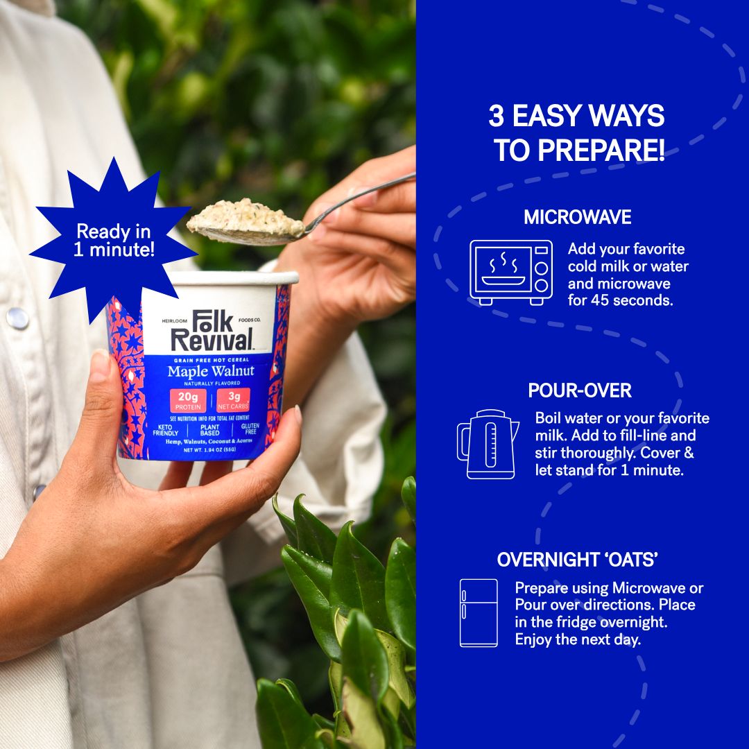 Add your favorite cold milk or water and microwave for 45 seconds.